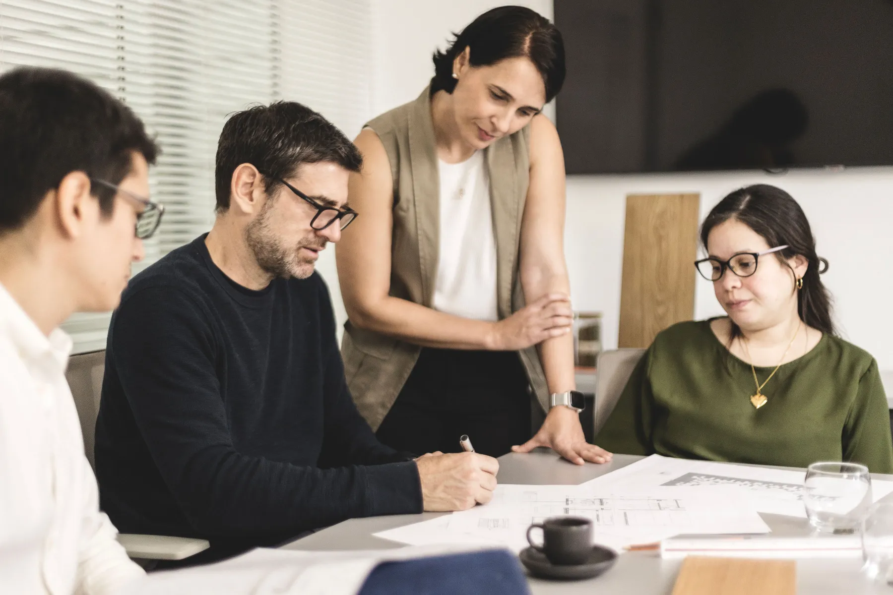 Nuestro equipo trabaja con una mirada integral y profesional, guiado por la convicción de que cada cliente merece un proceso claro, cuidado y personalizado. Para nosotros, el diseño no termina en el plano: se extiende en cada interacción, decisión y emoción que el cliente experimenta a lo largo del proyecto y la obra construida.